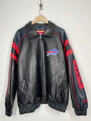 NFL Buffalo Bills Football Poly Leather Embroidered Zip Bomber Jacket - G-iii - XL