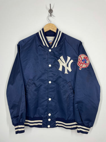 MLB New York NY Yankees Baseball 1980s Button Snap Satin Bomber Jacket - Pyramid - S