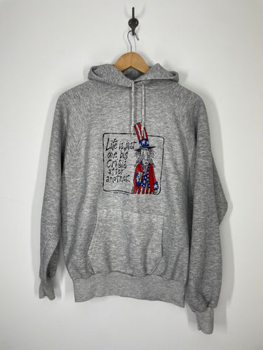 1982 Life Is One Big Crisis… Hoodie Sweatshirt - Star Spangled Bungles - L